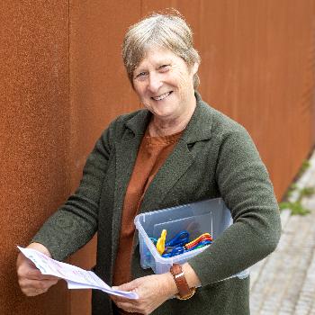 Annemie, de meesten kennen haar misschien beter als Moeke. Bestellingen plaatsen, scharen tellen, materiaallijsten nagaan, kampboxen klaarzetten... zonder ons Moeke zou er geen knutsel- en spelmateriaal zijn op Kriebelkamp. Haar talent, bezige bij, is dus zeker op z'n plaats.